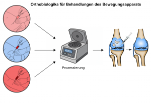 Der Begriff Orthobiologika beschreibt Therapien auf Basis von biologischen Ressourcen, die meist aus Blut, Knochenmark, Fett oder Amnion/Nabelschnur gewonnen werden. In den meisten Fällen werden Pathologien des Bewegungsapparates behandelt die, mit Überlastung und Trauma von Gewebestrukturen einhergehen und durch Abläufe von Inflammation, Degeneration und Nekrose gekennzeichnet sind. Klassischerweise finden wir diese im sportmedizinischen Bereich an Sehnen und deren Übergangsbereiche in Knochen und Muskel, sowie in Gelenken mit synovialem Reizzustand und Knorpelschäden und degenerative Prozesse in der Arthrose.